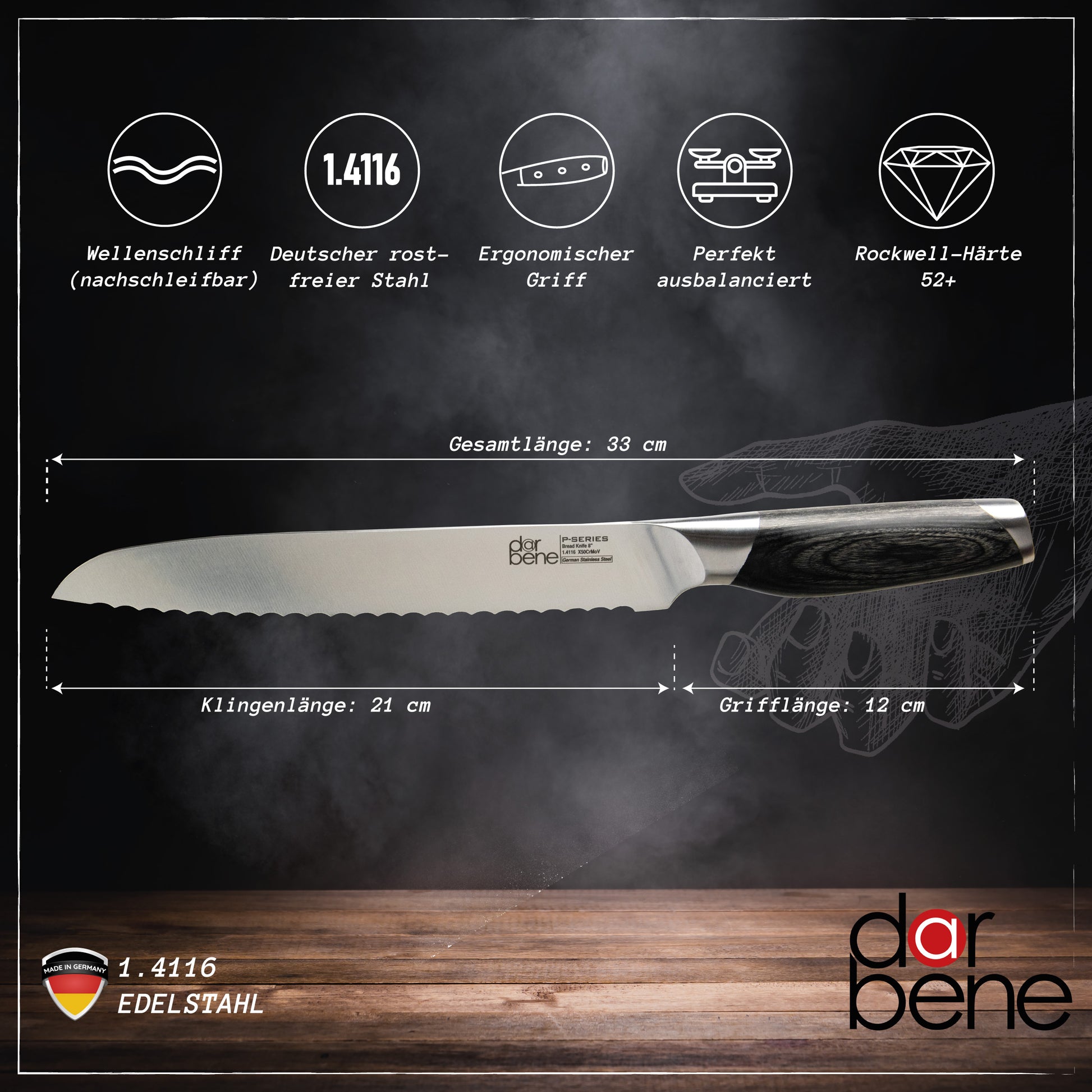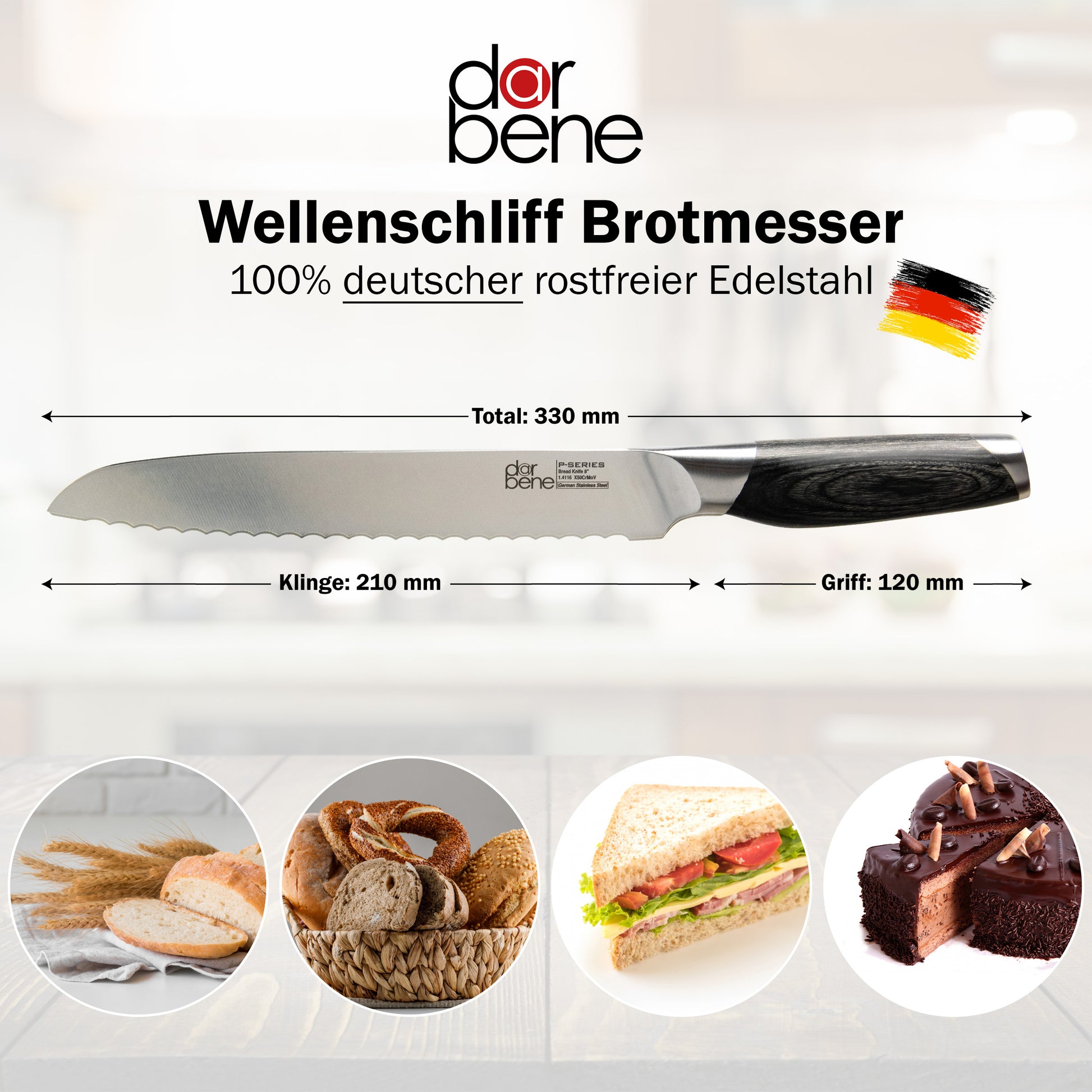 ✅ 𝗗𝗘𝗨𝗧𝗦𝗖𝗛𝗘𝗥 𝗘𝗗𝗘𝗟𝗦𝗧𝗔𝗛𝗟 - Der hochwertige Edelstahl aus Deutschland macht das Brotmesser mit Wellenschliff langlebig und robust. Ein scharfes Brotmesser gilt als Muss für jede Küche (55 HCR +/- 2).