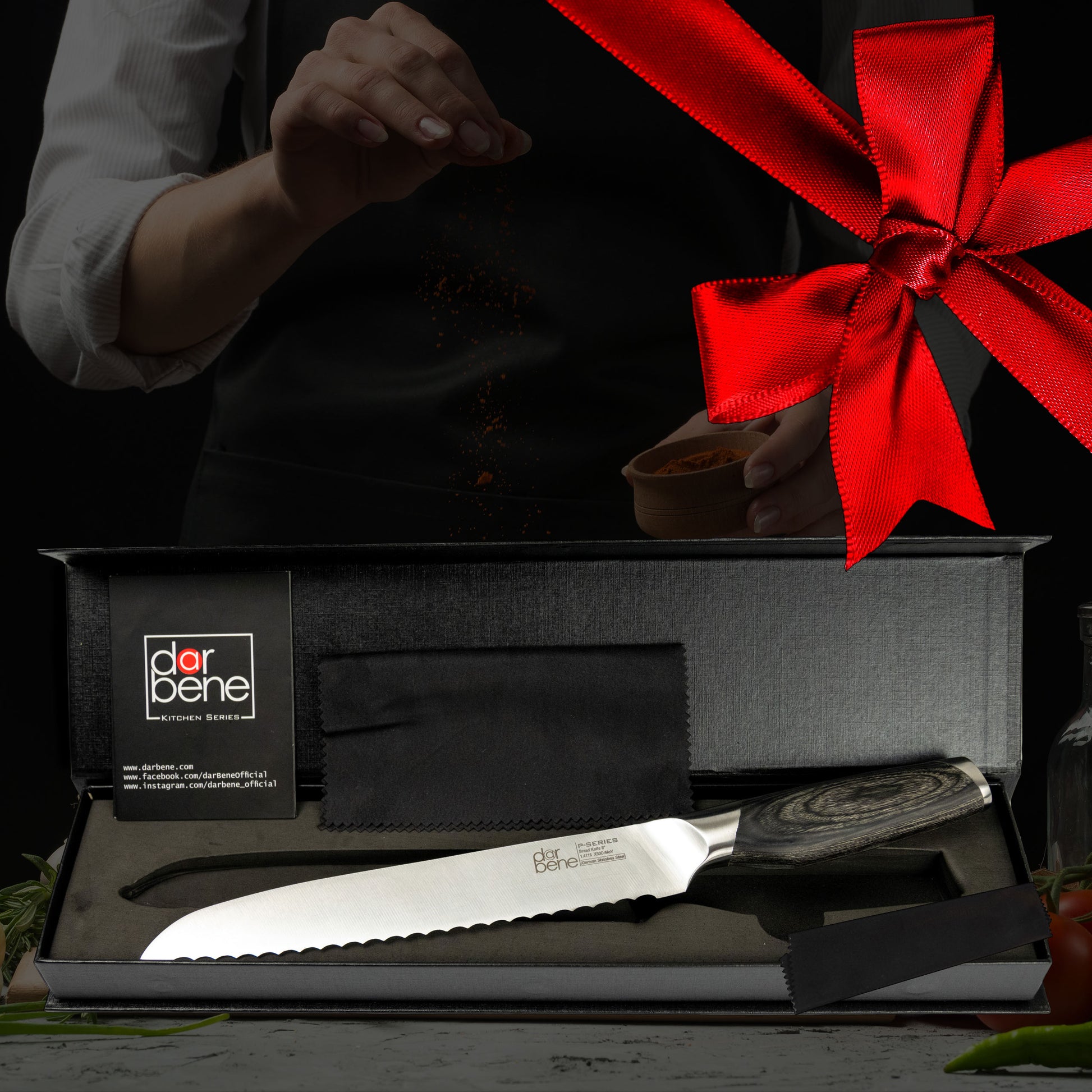Ihr neues DarBene Küchenmesser wird in einer edlen Geschenkbox geliefert. Bereiten Sie sich oder Ihren Liebsten schon vor dem Auspacken eine Freude mit einer hochwertigen Präsentverpackung. Ideal als Geburtstagsgeschenk, Weihnachtsgeschenk oder für Kochabende.