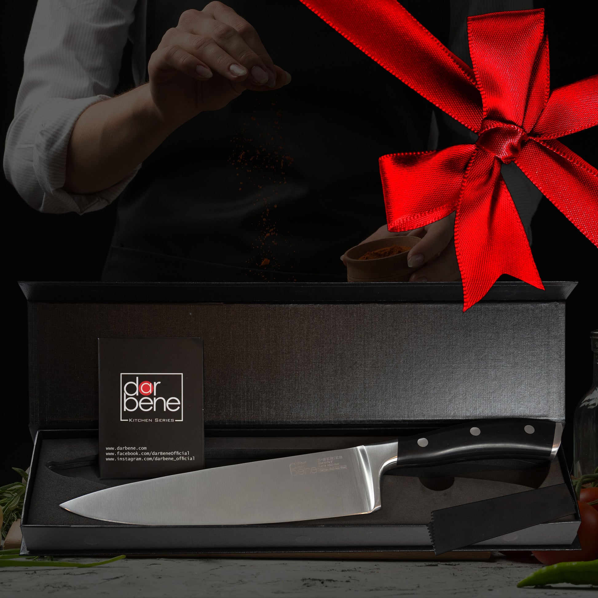 Ihr neues DarBene Küchenmesser wird in einer edlen Geschenkbox geliefert. Bereiten Sie sich oder Ihren Liebsten schon vor dem Auspacken eine Freude mit einer hochwertigen Präsentverpackung. Ideal als Geburtstagsgeschenk, Weihnachtsgeschenk oder für Kochabende.