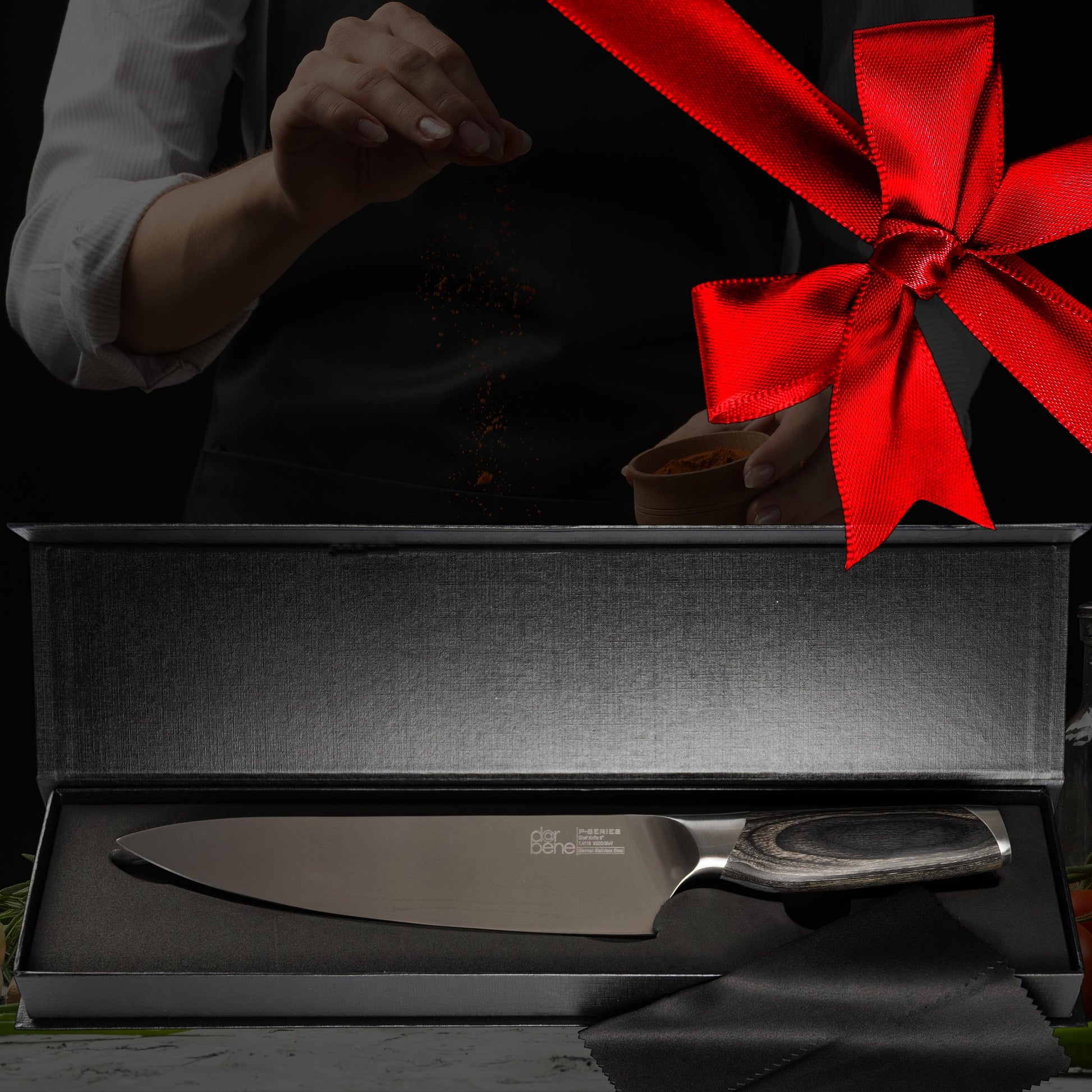 Ihr neues DarBene Küchenmesser wird in einer edlen Geschenkbox geliefert. Bereiten Sie sich oder Ihren Liebsten schon vor dem Auspacken eine Freude mit einer hochwertigen Präsentverpackung. Ideal als Geburtstagsgeschenk, Weihnachtsgeschenk oder für Kochabende.
