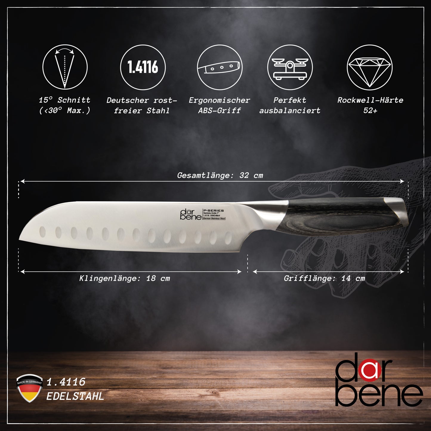 VIELSEITIGER EINSATZ – Ein Santokumesser ganz nach Ihrem Geschmack für Profis und Hobbyköche - zum Schneiden und Hacken von knackigem Gemüse, Obst, frischem Fisch & saftigem Fleisch. Das Allround-Küchenmesser als Herzstück der Küche für vielfältigen Einsatz.
