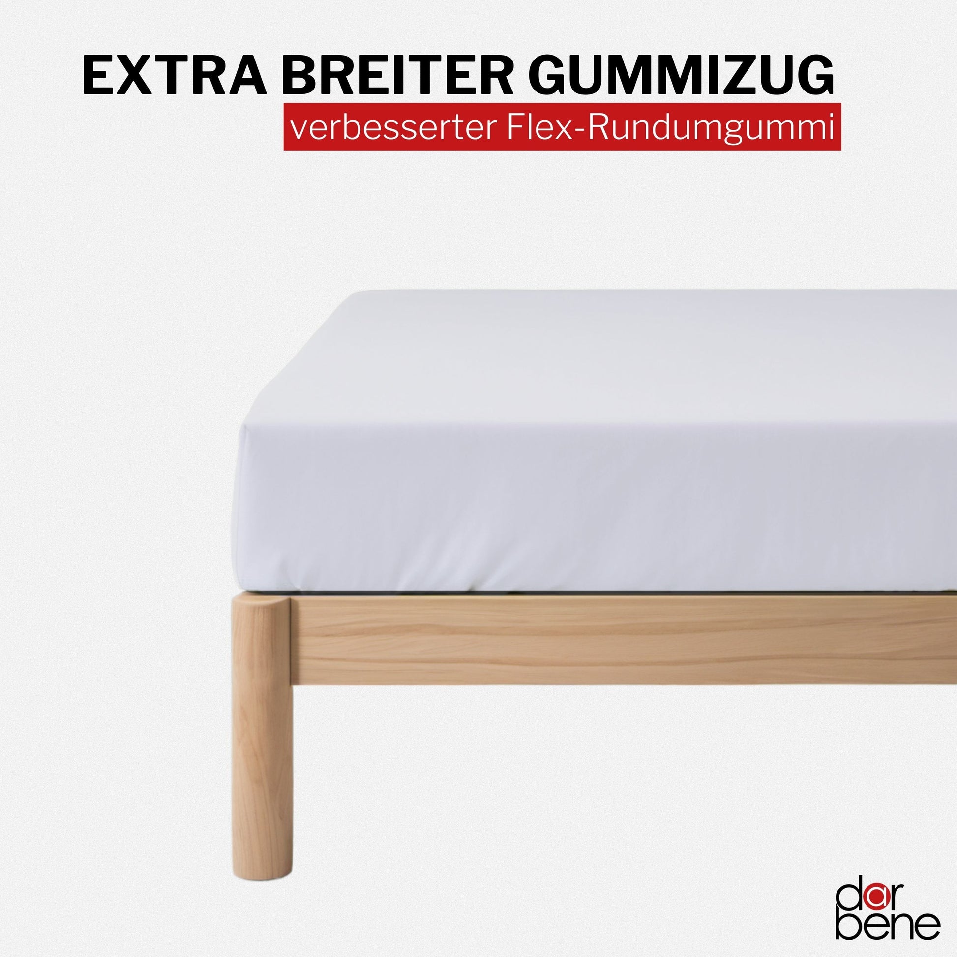 Ihr neues DarBene Premium Spannbettlaken passt einfach zu Ihrer Matratze wie eine zweite Haut und umhüllt diese fusselfrei. Passend für alle handelsüblichen Matratzen bis 30 cm Steghöhe. Dies gilt auch für Boxspringbetten, Doppelbetten, Luftbetten oder Topper. Erwerben Sie nicht einfach irgendein Spannbettlaken für Ihre Traumnächte – erfreuen Sie sich an faltenfreie und weiche Nächte.